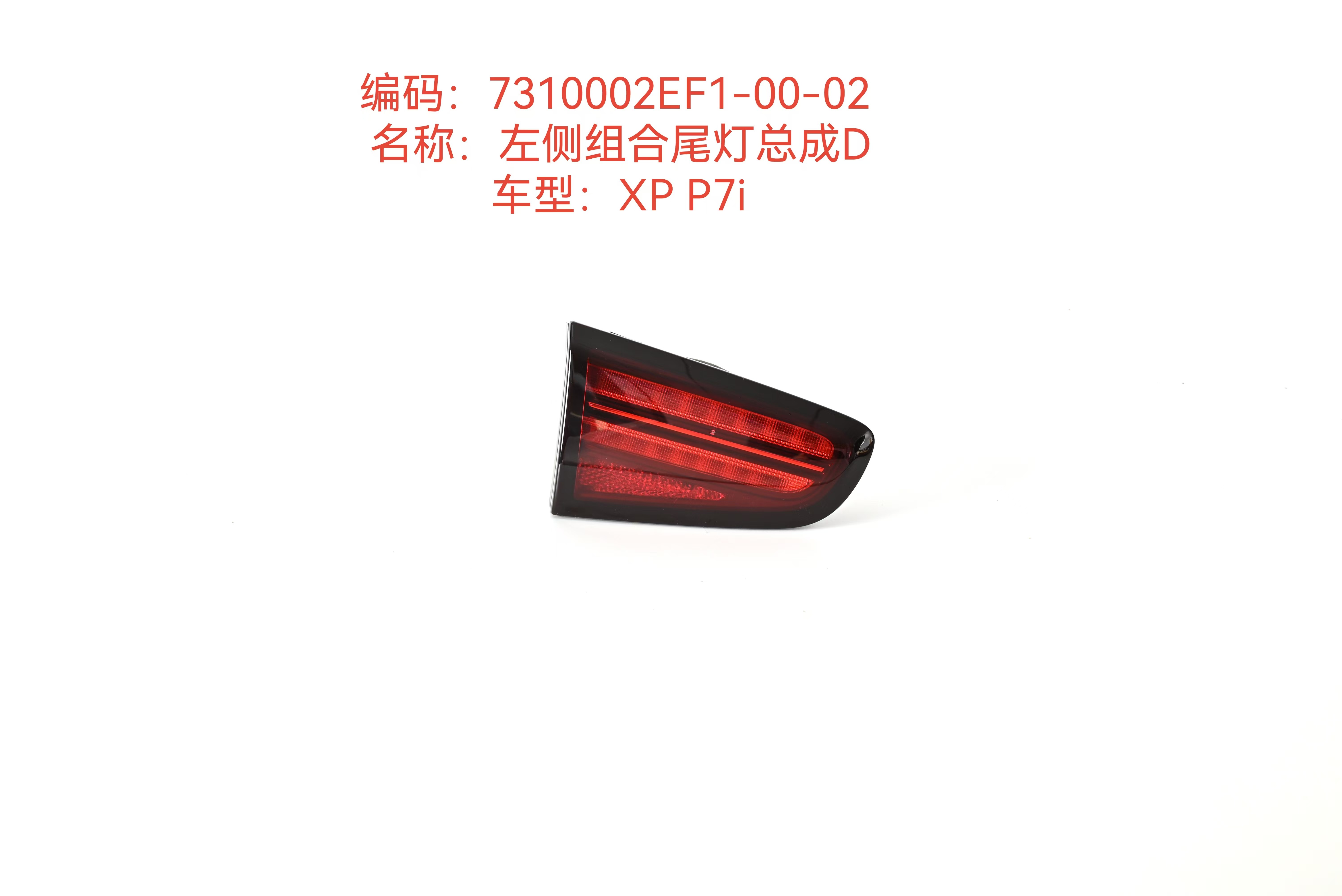 L'ensemble de feux arrière combinés gauche Xiaopeng P7I (numéro de pièce : 7310002EF1-00-02) est un composant essentiel du système d'éclairage arrière du véhicule. Cet ensemble de qualité OEM combine des fonctions d'éclairage essentielles avec des éléments de conception avancés qui améliorent à la fois la sécurité et l'esthétique du véhicule.